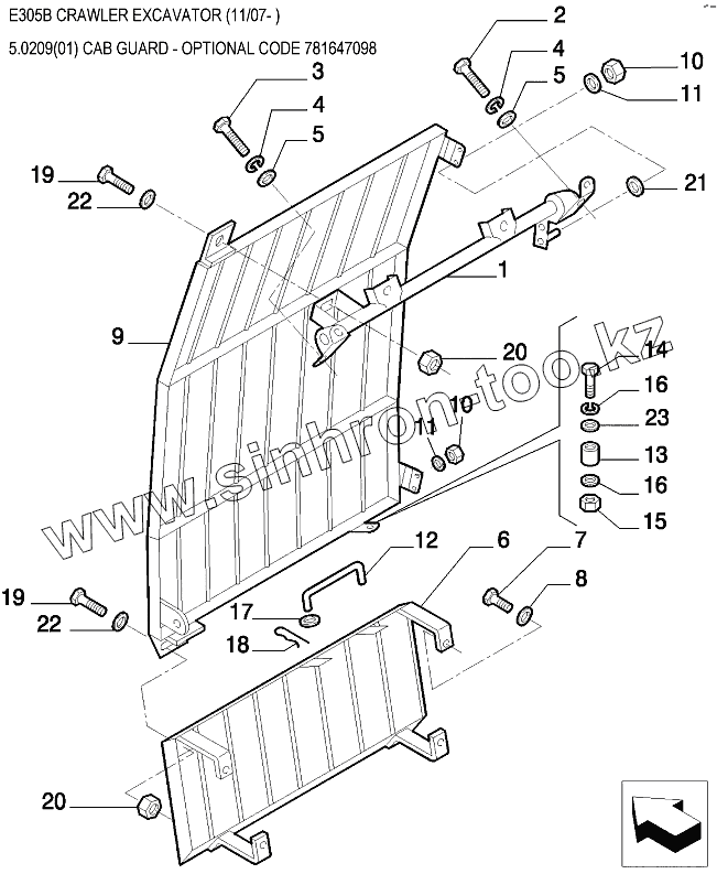 Каталог запасных частей к технике: New Holland Экскаватор E305B. Защита кабины