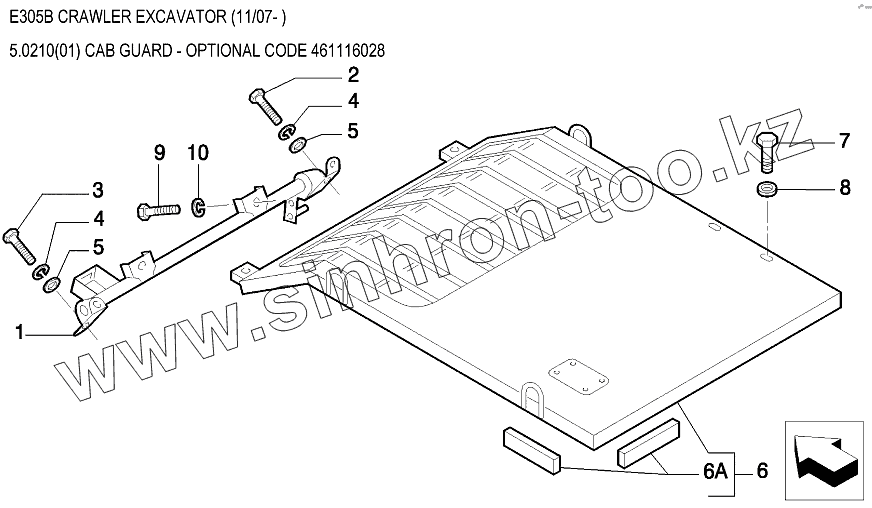 Каталог запасных частей к технике: New Holland Экскаватор E305B. Защита кабины