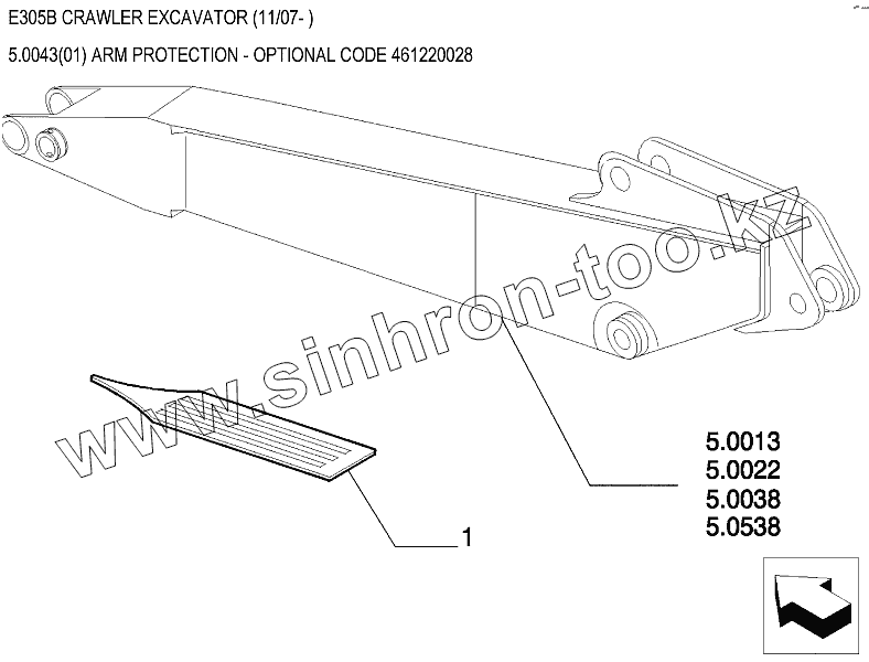 Каталог запасных частей к технике: New Holland Экскаватор E305B. Защита рукояти