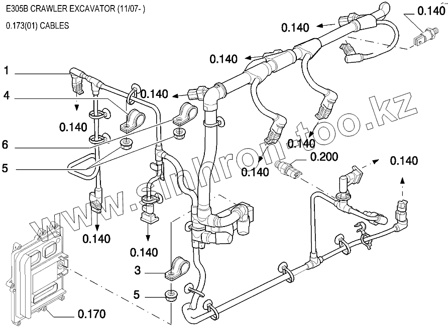 Каталог запасных частей к технике: New Holland Экскаватор E305B. Жгуты проводов двигателя