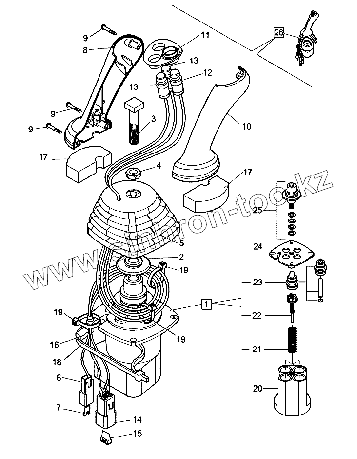 Каталог запасных частей к технике: New Holland Экскаватор LB110B (часть 1). Клапан, джойстик (левый)