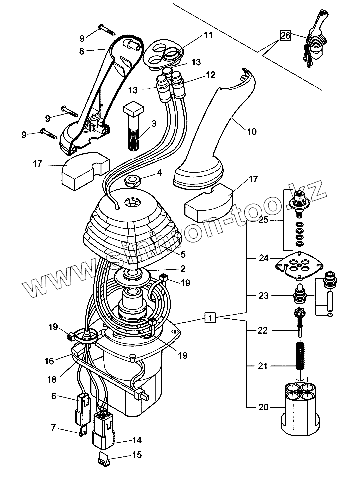 Каталог запасных частей к технике: New Holland Экскаватор LB110B (часть 1). Клапан, джойстик (левый)