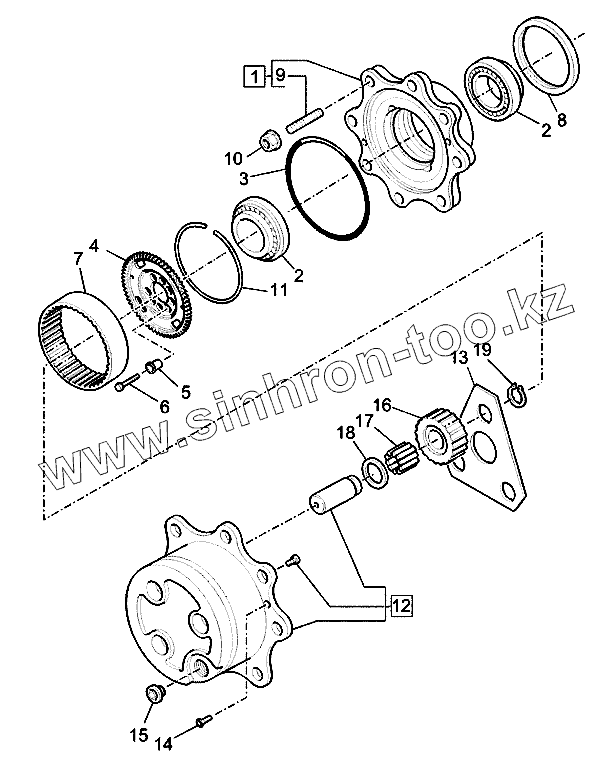 Каталог запасных частей к технике: New Holland Экскаватор LB110B (часть 1). Передний мост 4wd, ступицы