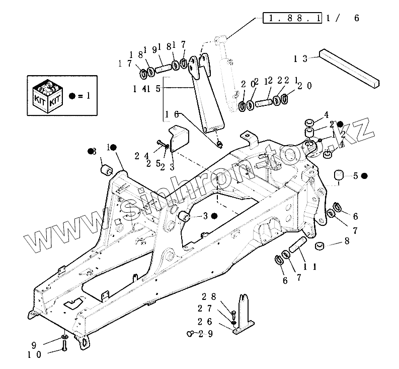 Каталог запасных частей к технике: New Holland Экскаватор LB110B (часть 1). Рама (center pivot)