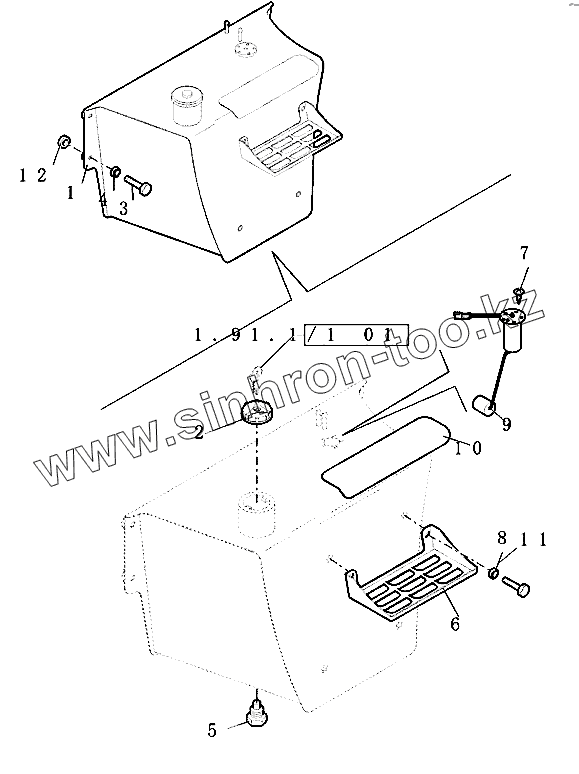 Каталог запасных частей к технике: New Holland Экскаватор LB110B (часть 1). Топливный бак и аксессуары