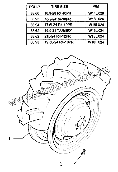 Каталог запасных частей к технике: New Holland Экскаватор LB110B (часть 2). Задние колеса