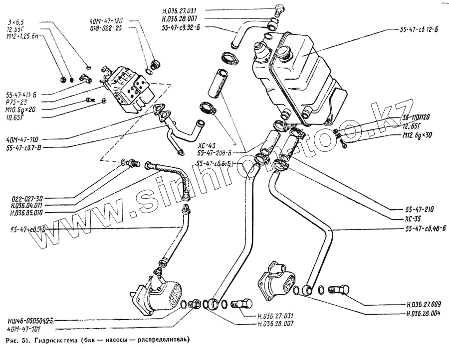 Каталог запасных частей к технике: Онежец ТДТ-55А. Бак, насосы, распределитель