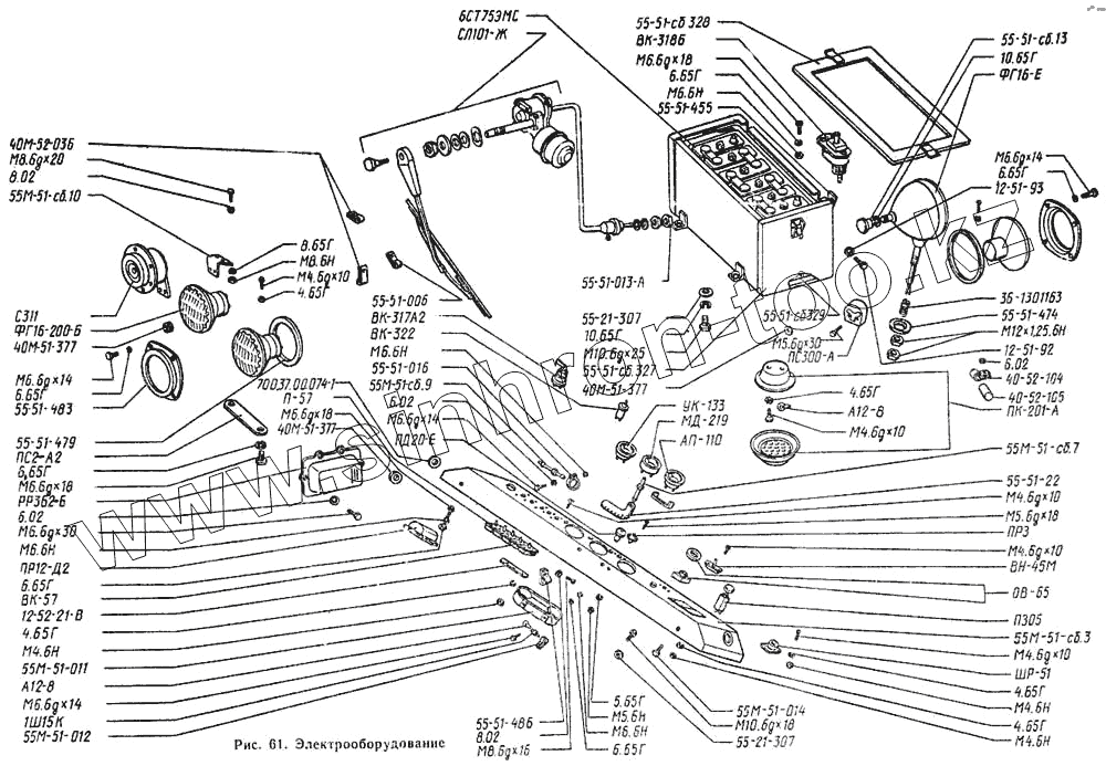 Каталог запасных частей к технике: Онежец ТДТ-55А. Электрооборудование