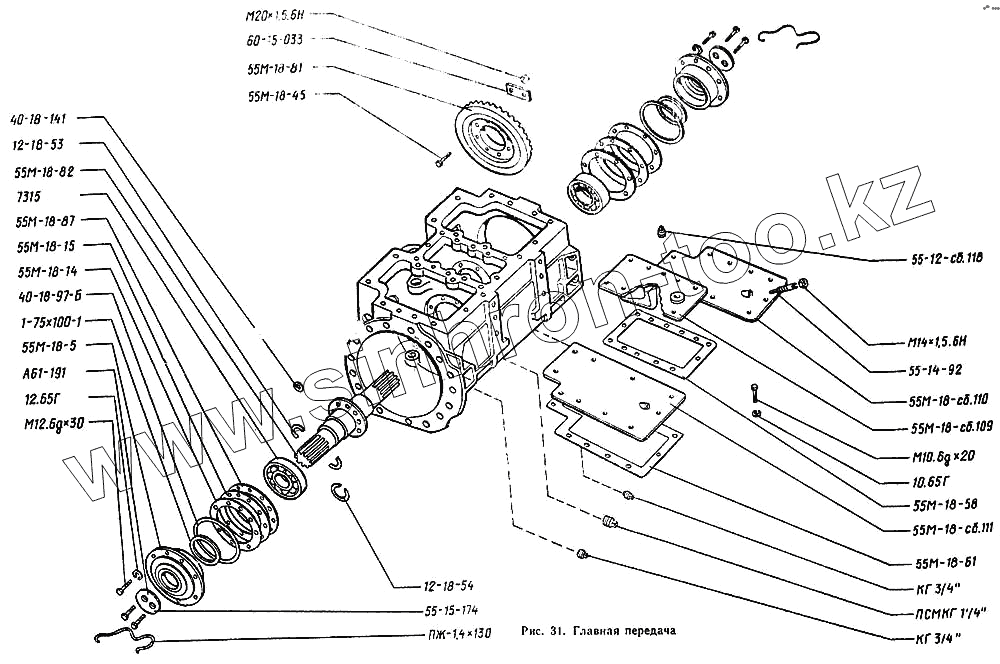 Каталог запасных частей к технике: Онежец ТДТ-55А. Главная передача
