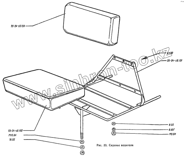 Каталог запасных частей к технике: Онежец ТДТ-55А. Сиденье водителя