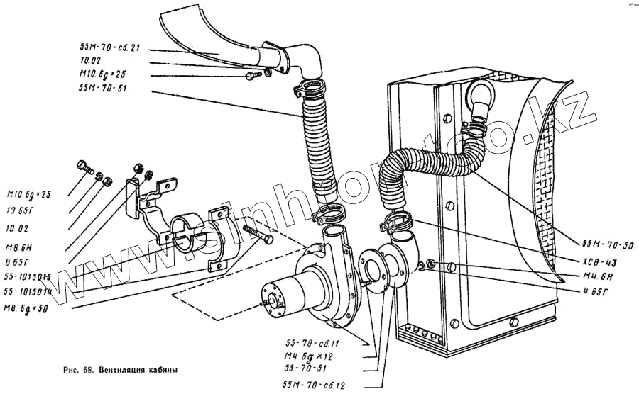 Каталог запасных частей к технике: Онежец ТДТ-55А. Вентиляция кабины