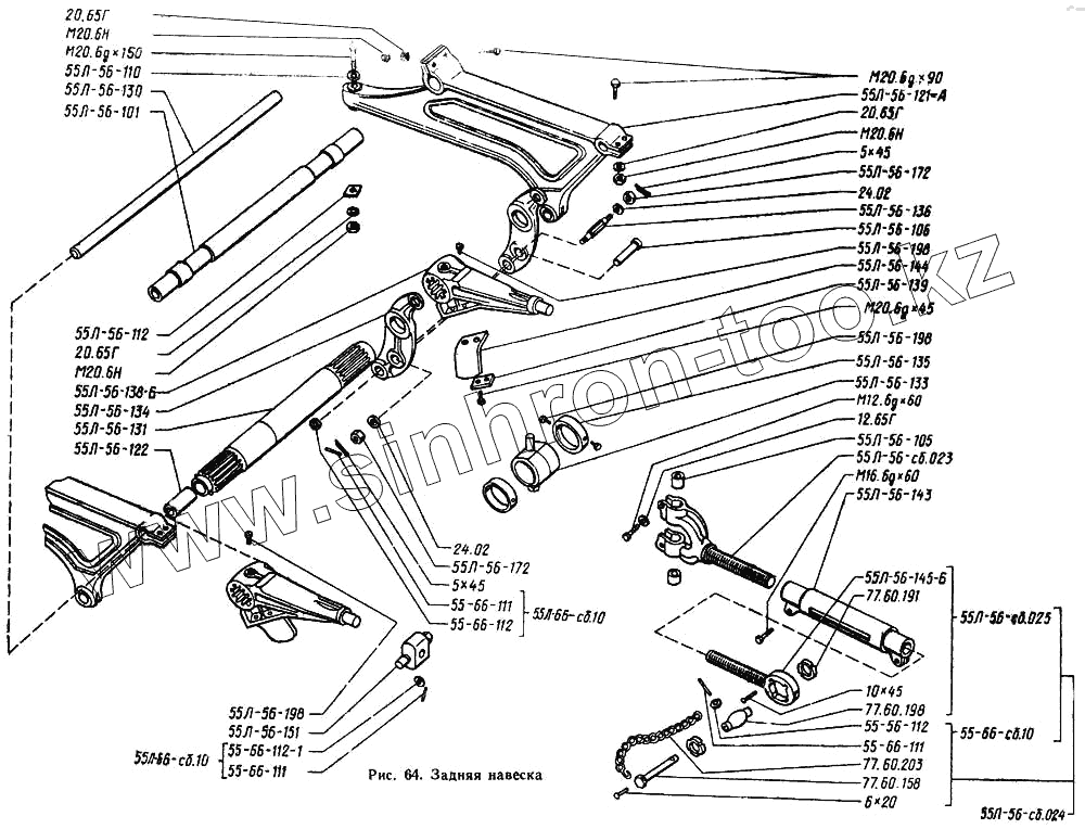 Каталог запасных частей к технике: Онежец ТДТ-55А. Задняя навеска