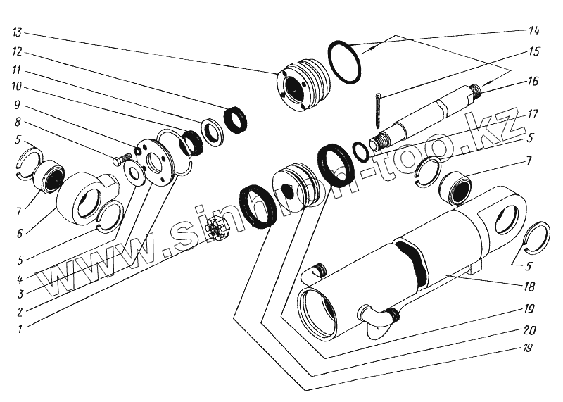 Каталог запасных частей к технике: ОЗП ТО-30. ТО-30.44.10.000. Цилиндр ковшовый