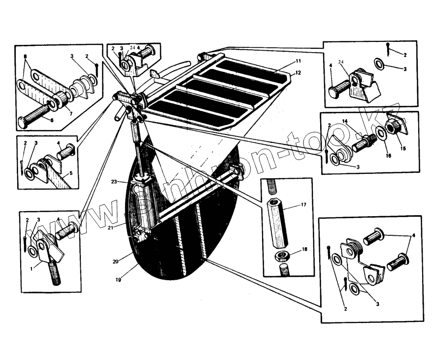 Каталог запасных частей к технике: ПАО "ТЗА" Автобетоноcмеситель 58140В. Крышка с пневмоцилиндром