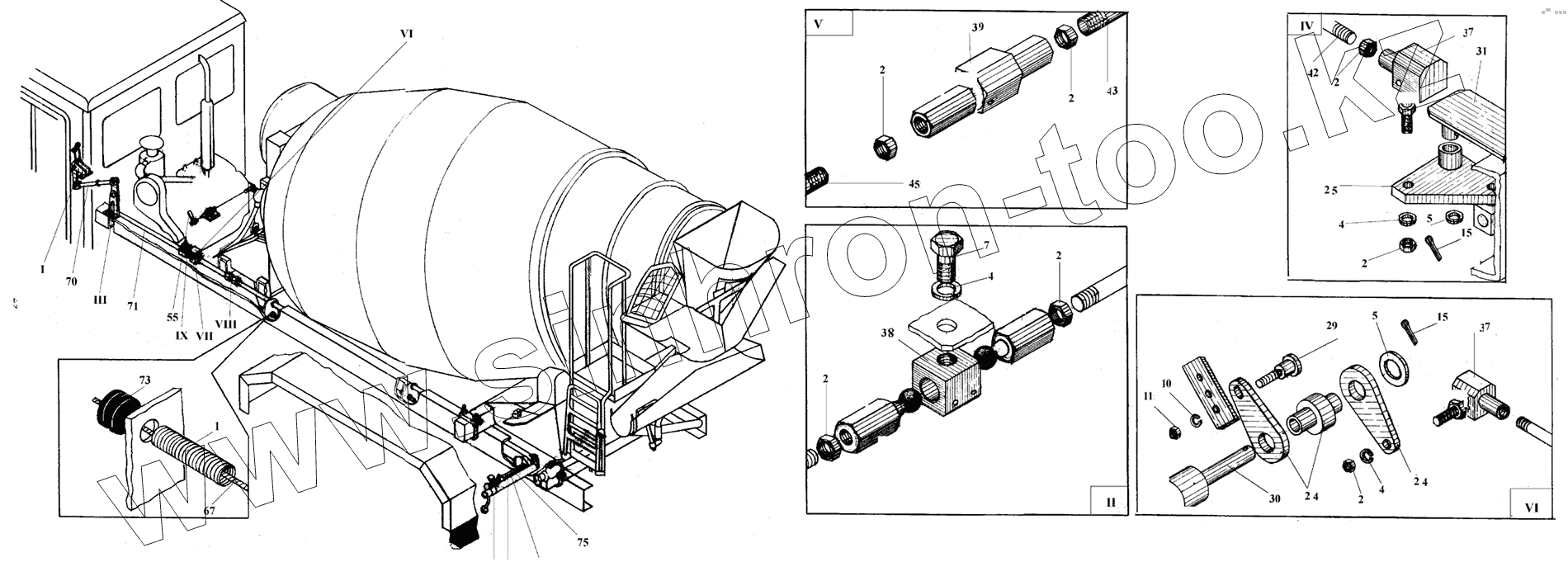 Каталог запасных частей к технике: ПАО "ТЗА" Автобетоноcмеситель 58140В. Органы управления