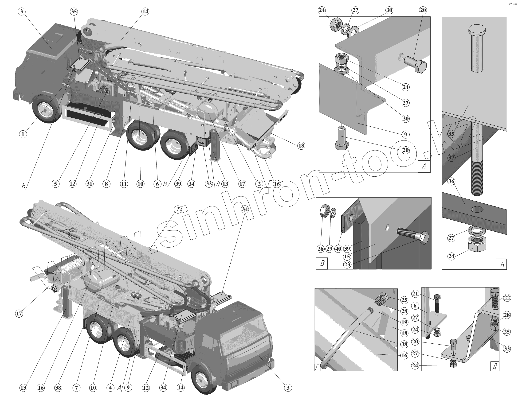 Каталог запасных частей к технике: ПАО "ТЗА" Автобетононасос 581532. Автобетононасос 581532.00.00.000