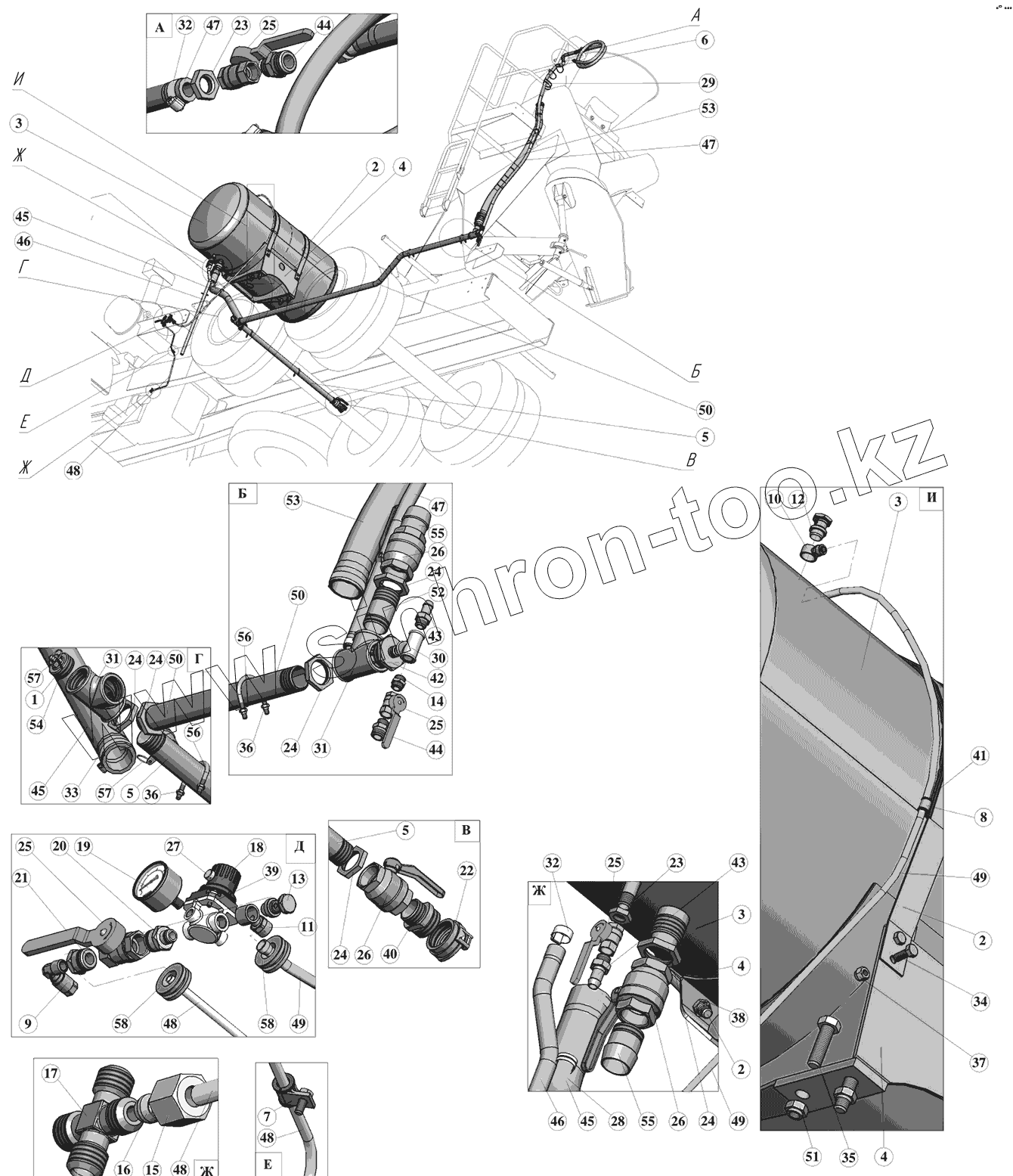 Каталог запасных частей к технике: ПАО "ТЗА" Автобетоносмеситель 58147С. Система подачи воды