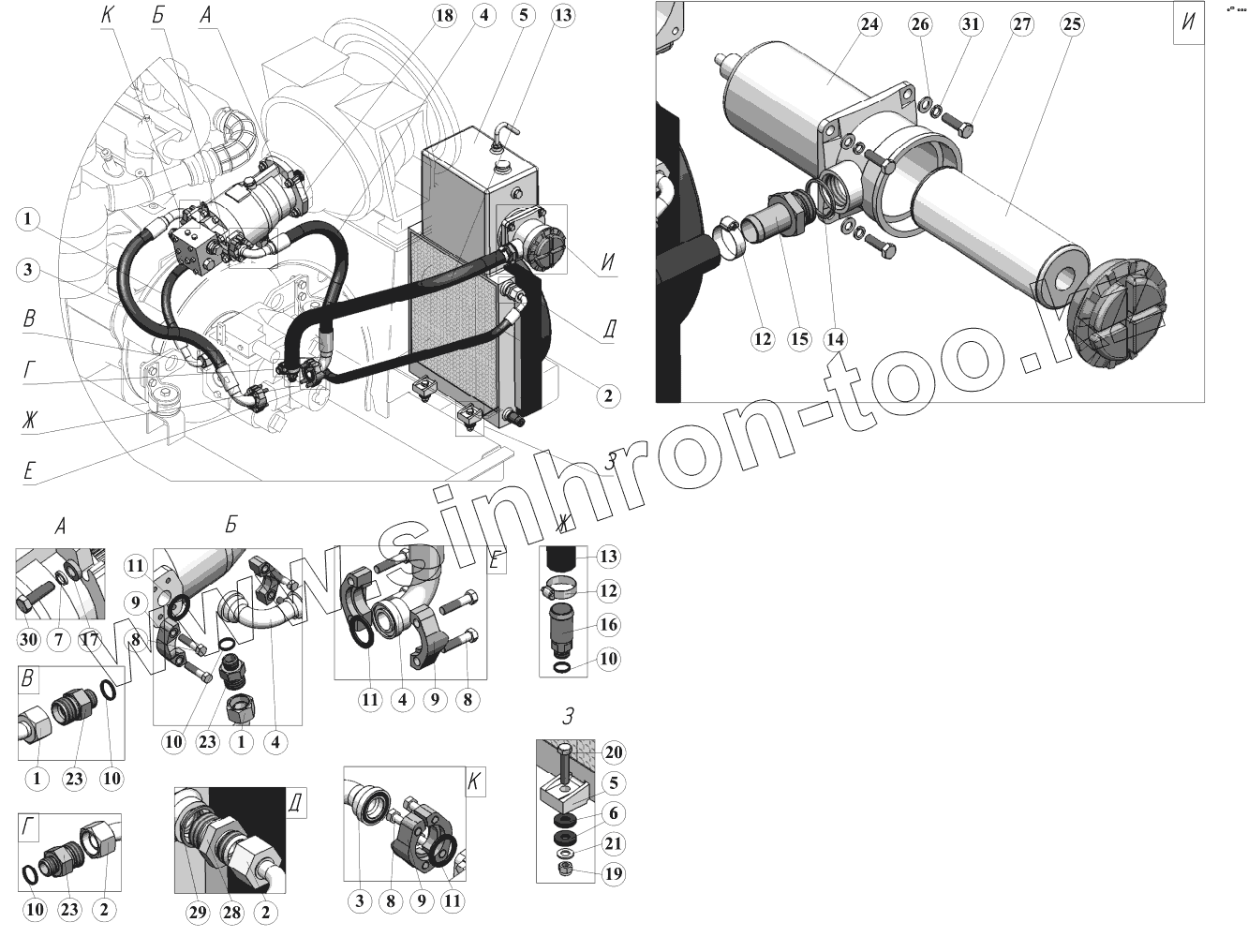 Каталог запасных частей к технике: ПАО "ТЗА" Автобетоносмеситель 58149Z. Гидроразводка