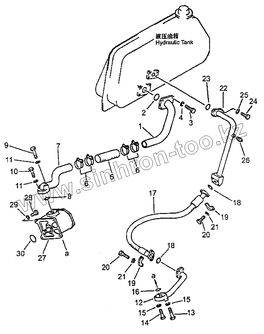 Каталог запасных частей к технике: PENGPU PengPu PD-165. HYDRAULIC PIPING (PUMPТО HYDRAULIC TANK) (PD165YG)