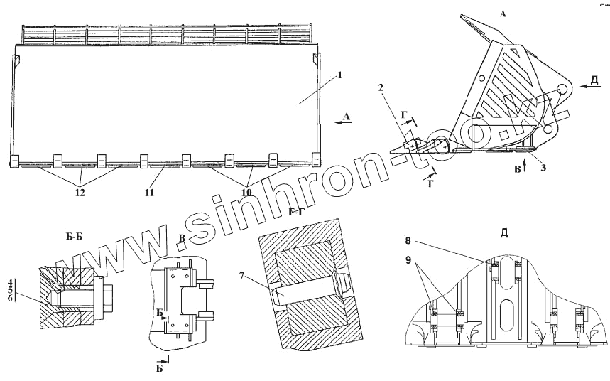 Каталог запасных частей к технике: Промтрактор ПК-12.02. 412701-93-20СП Ковш