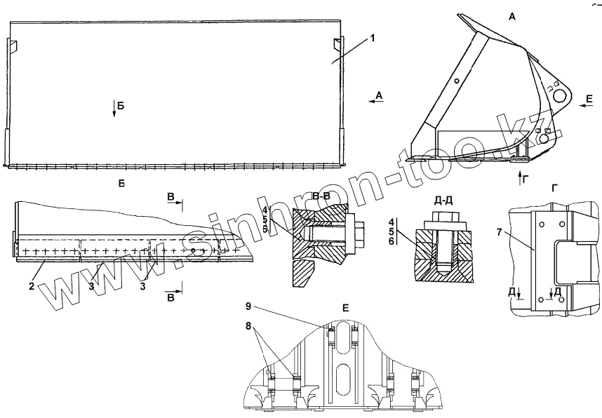 Каталог запасных частей к технике: Промтрактор ПК-12.02. 412701-94-20СП Ковш