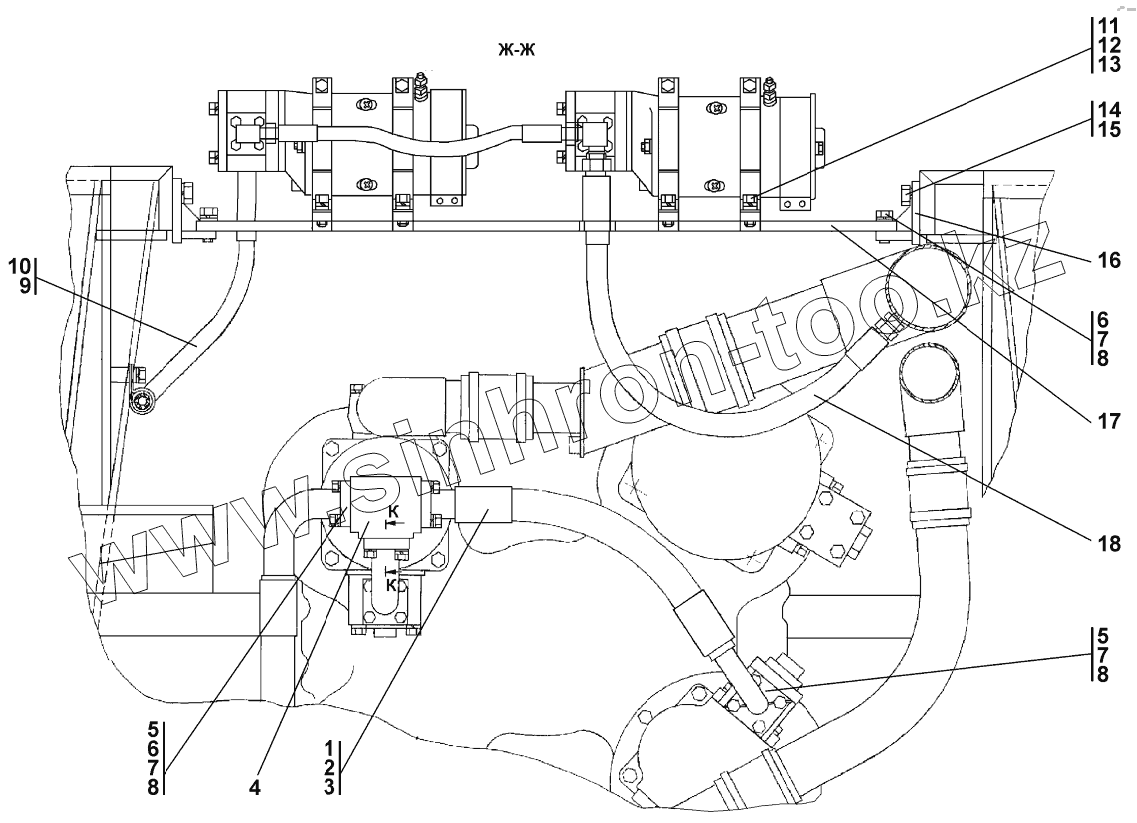 Каталог запасных частей к технике: Промтрактор ПК-12.02К. Гидросистема управления поворотом
