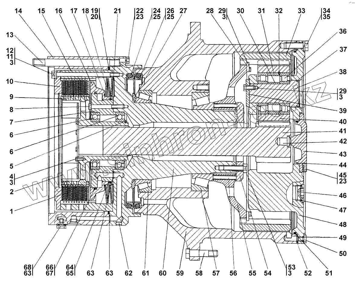 Каталог запасных частей к технике: Промтрактор ПК-12.02К. Редуктор колесный и тормоз