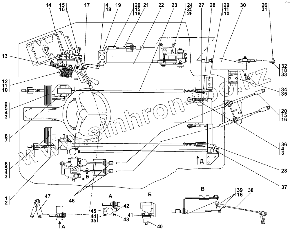 Каталог запасных частей к технике: Промтрактор ПК-12.02К. Управление трактором