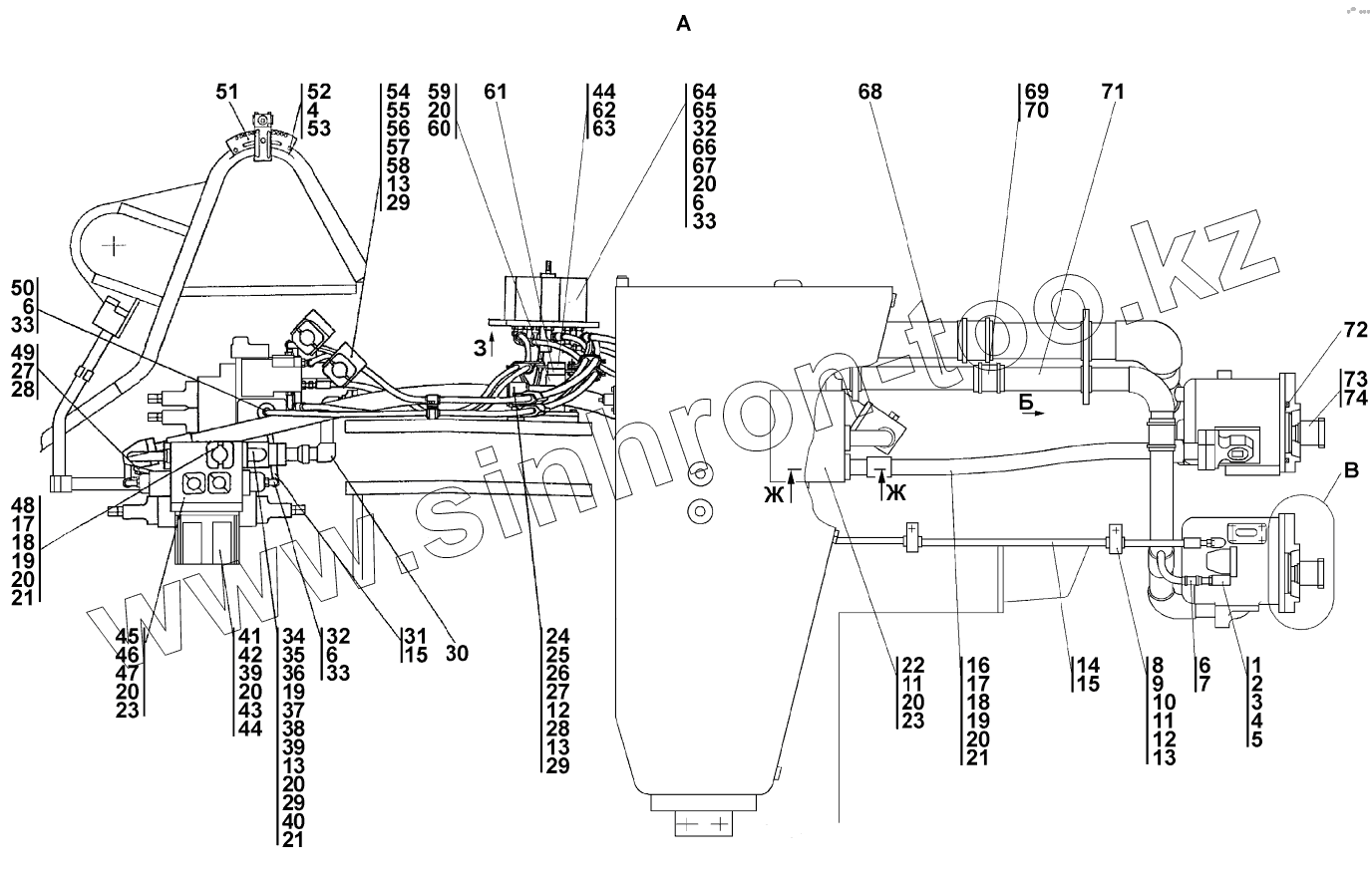 Каталог запасных частей к технике: Промтрактор ПК-12.02К. Установка гидросистемы