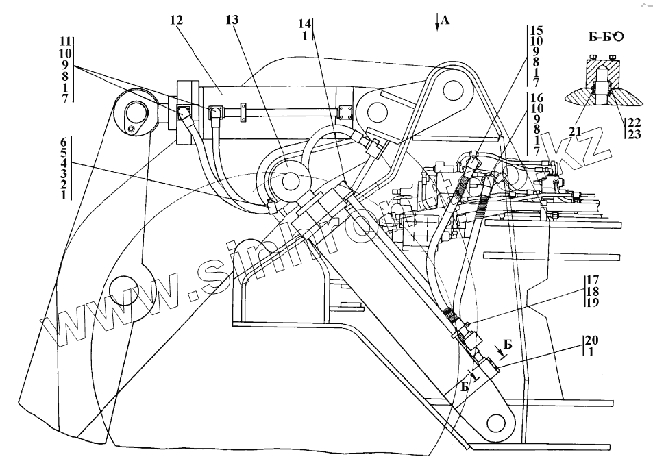 Каталог запасных частей к технике: Промтрактор ПК-12.02К. Установка гидроцилиндров погрузочного оборудования