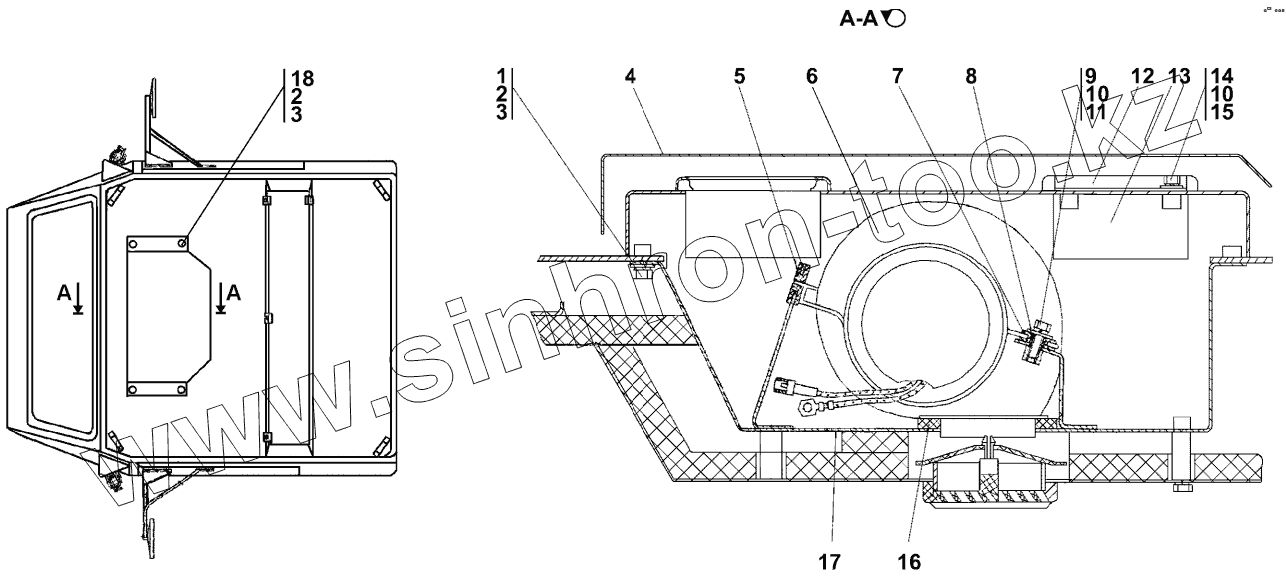 Каталог запасных частей к технике: Промтрактор ПК-12.02К. Установка вентиляторов кабины
