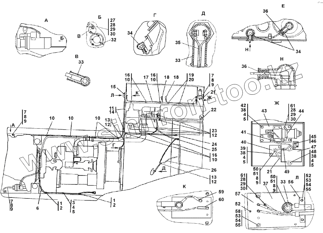 Каталог запасных частей к технике: Промтрактор Шасси ТП-20.02. Установка электрооборудования на раме