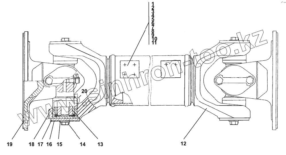 Каталог запасных частей к технике: Промтрактор Шасси ТП-20.02. Вал карданный