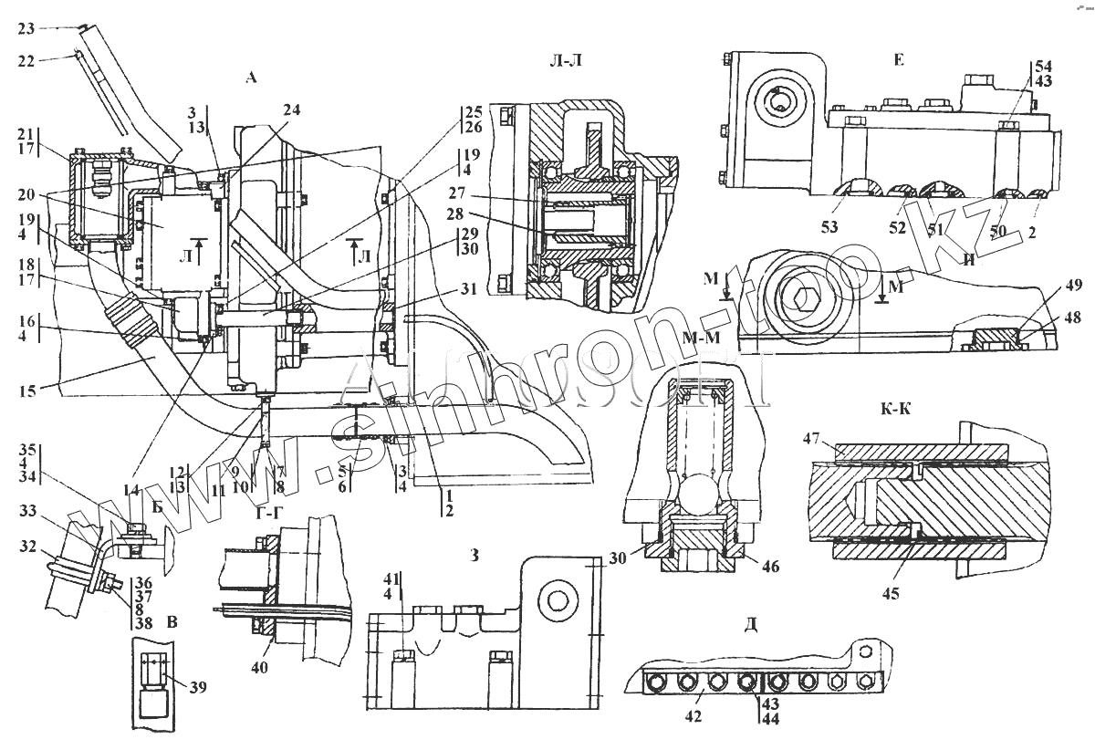 Каталог запасных частей к технике: Промтрактор Т-11.01Я. Установка трансмиссии