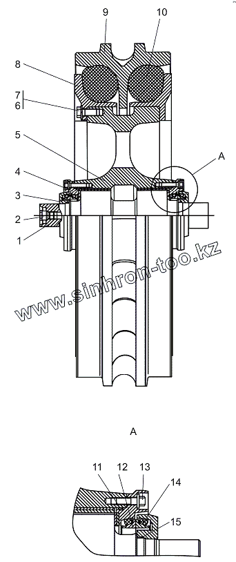 Каталог запасных частей к технике: Промтрактор Т-15.01К. 1501-21-45СП Колесо натяжное