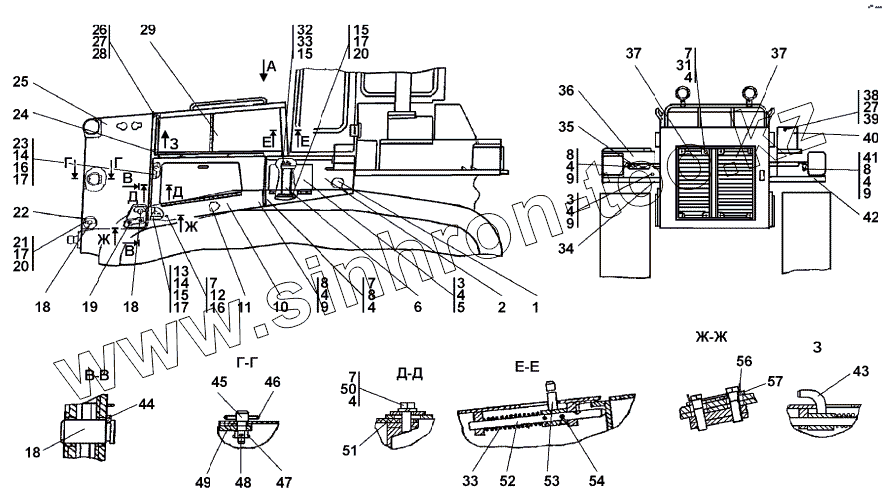 Каталог запасных частей к технике: Промтрактор Т-15.01К. 1501-55-1-02СП Облицовка