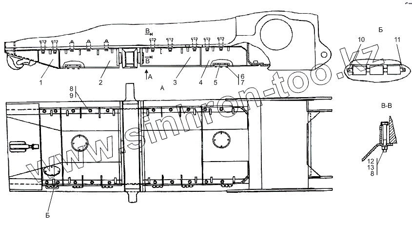 Каталог запасных частей к технике: Промтрактор Т-15.01К. 1501-64-1-02СП Установка кожухов