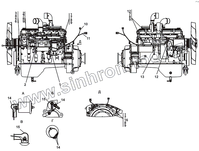 Каталог запасных частей к технике: Промтрактор Т-15.01К. 1506-10-12СП Электрооборудование двигателя