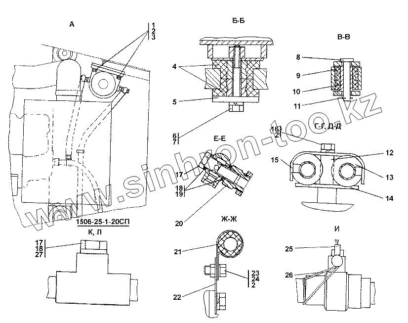 Каталог запасных частей к технике: Промтрактор Т-15.01К. 1506-25-1СП Установка топливного бака