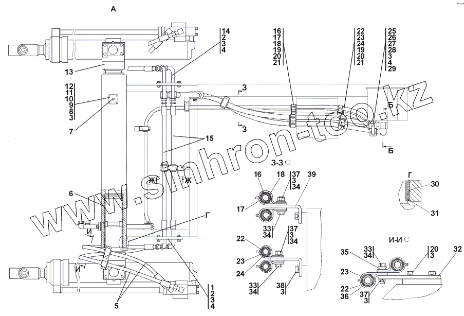 Каталог запасных частей к технике: Промтрактор Т-15.01К. 1512-26-11СП Установка гидроцилиндров
