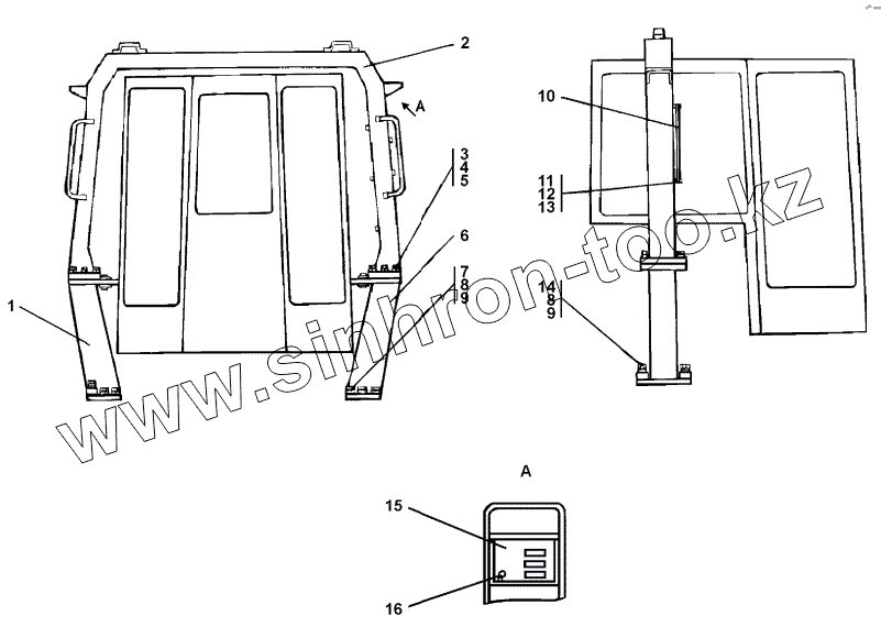 Каталог запасных частей к технике: Промтрактор Т-15.01К. 2001-61-1СП Установка защиты кабины