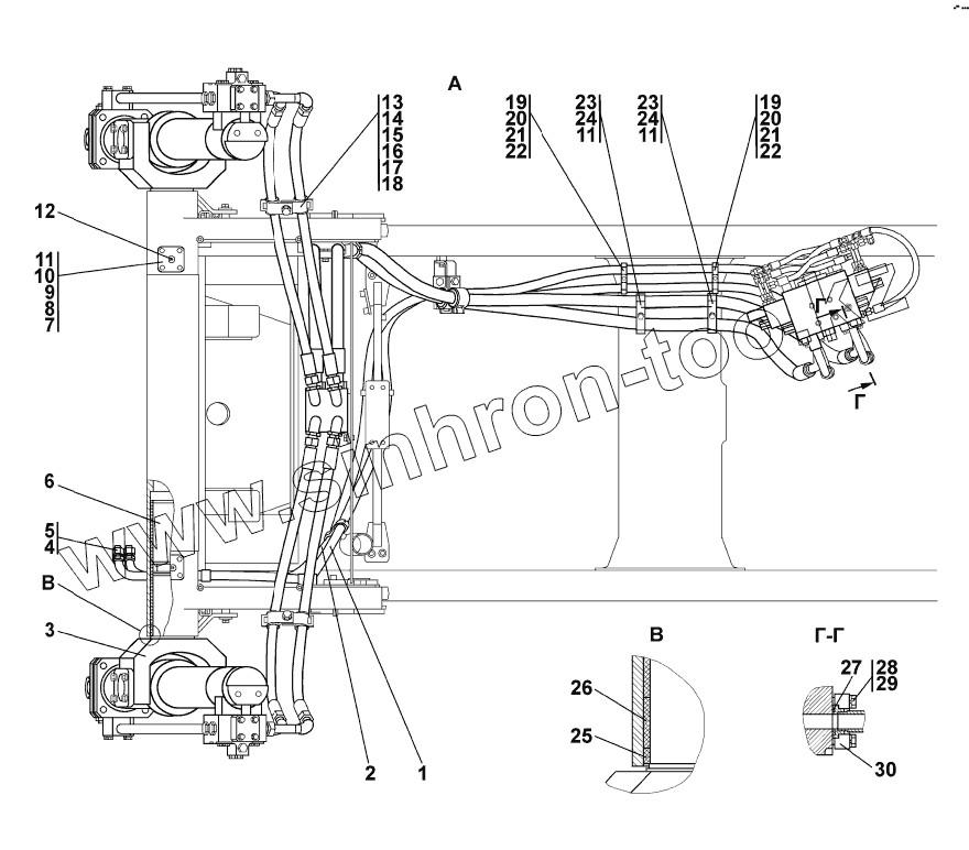 Каталог запасных частей к технике: Промтрактор Т-15.02K. Установка гидроцилиндров
