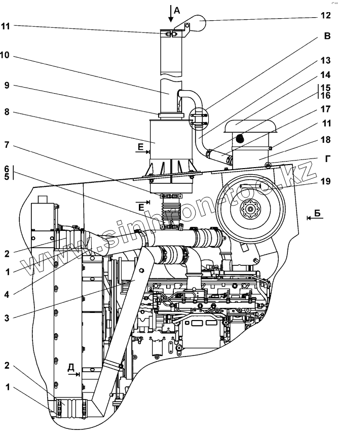 Каталог запасных частей к технике: Промтрактор Т-15.02K. Установка систем воздухоочистки и выпуска