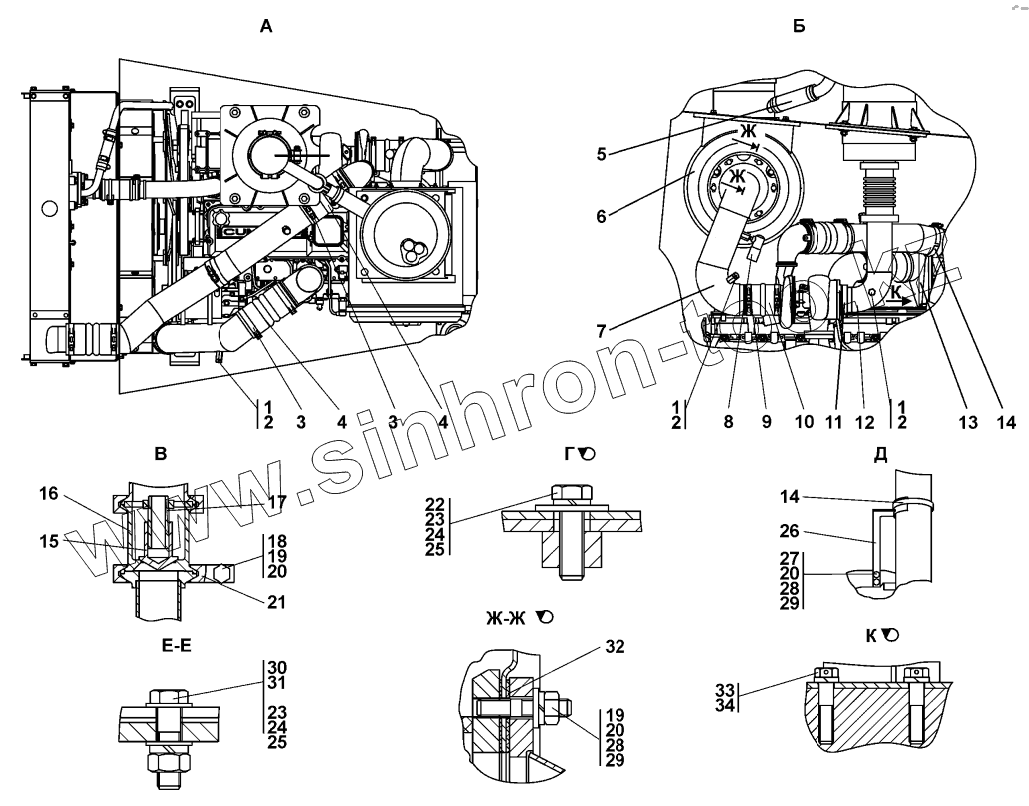 Каталог запасных частей к технике: Промтрактор Т-15.02K. Установка систем воздухоочистки и выпуска
