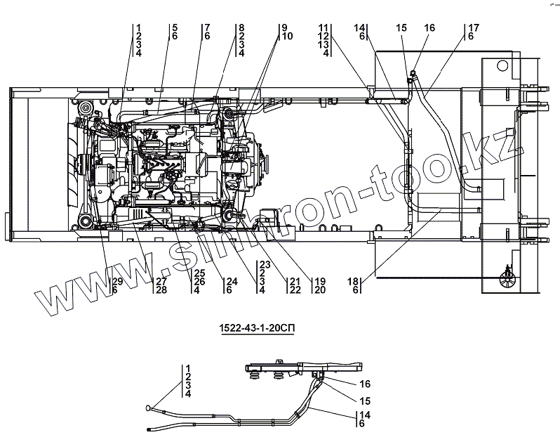 Каталог запасных частей к технике: Промтрактор Т-15.02Я. 1522-43-1СП Установка системы подогрева