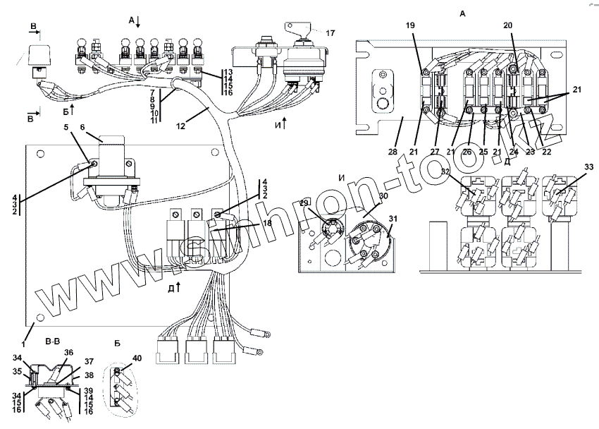 Каталог запасных частей к технике: Промтрактор Т-20.01К. 1102-10-150СП Блок выключателей
