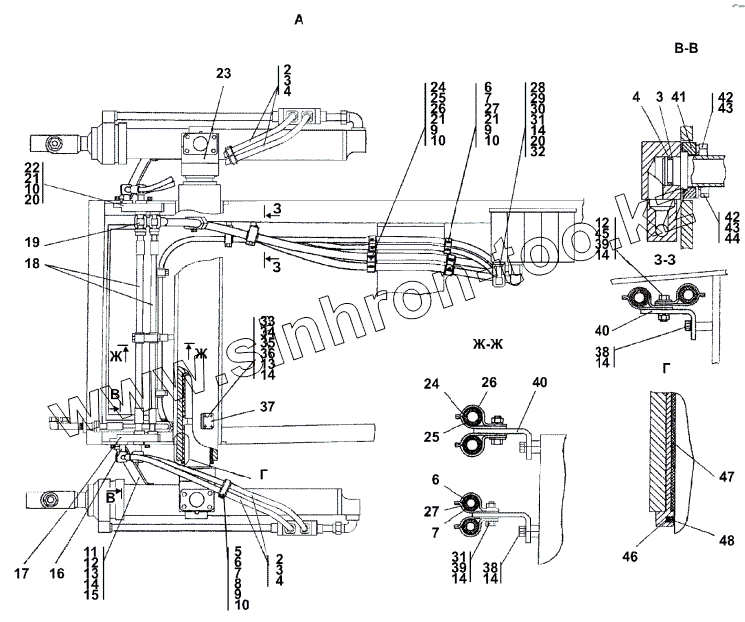 Каталог запасных частей к технике: Промтрактор Т-20.01К. 1501-26-10-02СП Установка гидроцилиндров