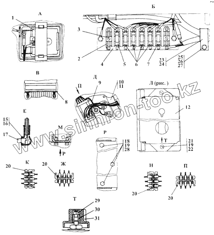 Каталог запасных частей к технике: Промтрактор Т-20.01Я. Блок выключателей