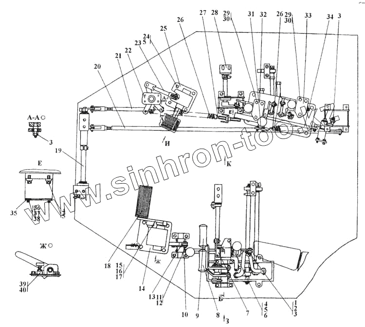 Каталог запасных частей к технике: Промтрактор Т-20.01Я. Привод управления
