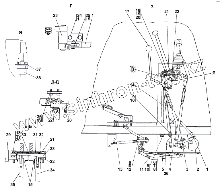 Каталог запасных частей к технике: Промтрактор Т-20.01Я (2005). 2001-13-50СП Привод управления